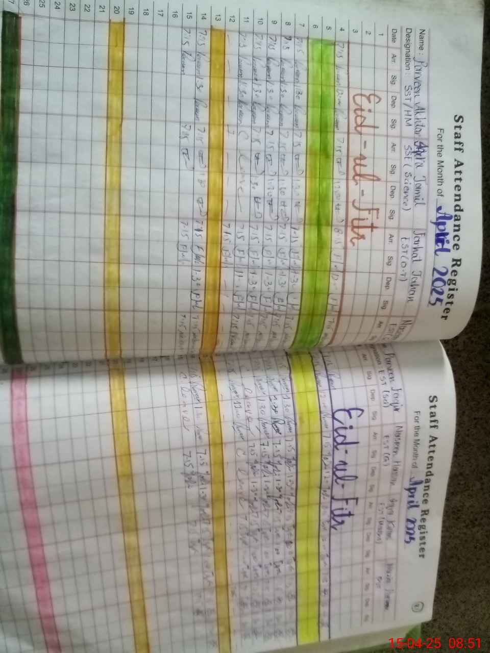 | CNIC | Full Name | Designation | R/C | Absence During Last Calender Month |