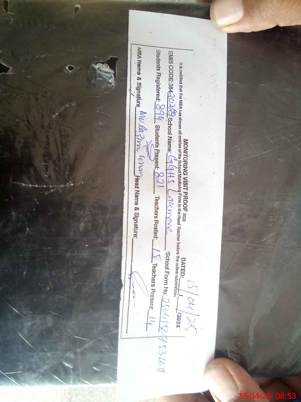 | EMIS Code: 38420229 | Name of School: GGHS LAK MORE | |||