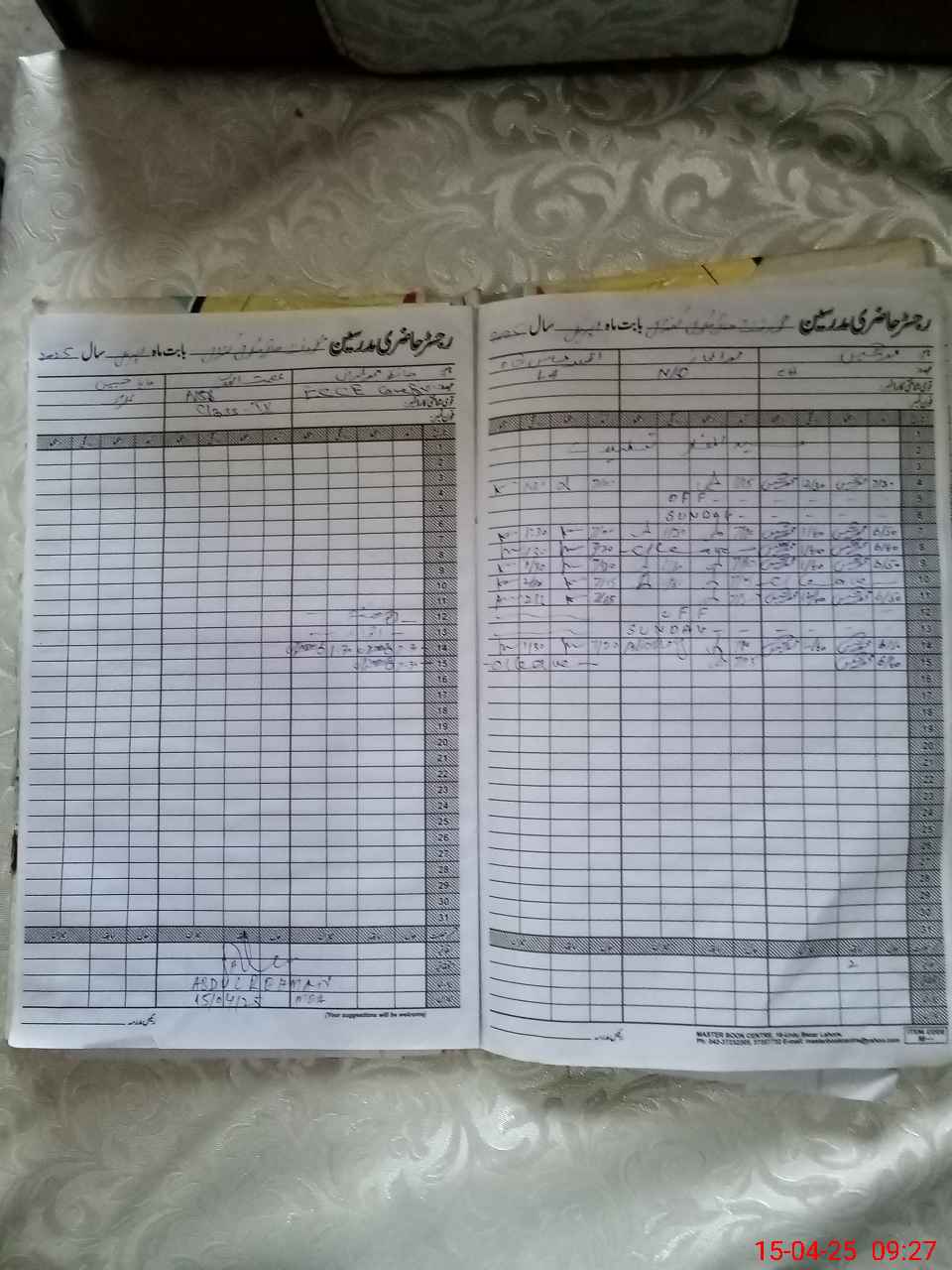 | CNIC | Full Name | Designation | R/C | Absence During Last Calender Month |