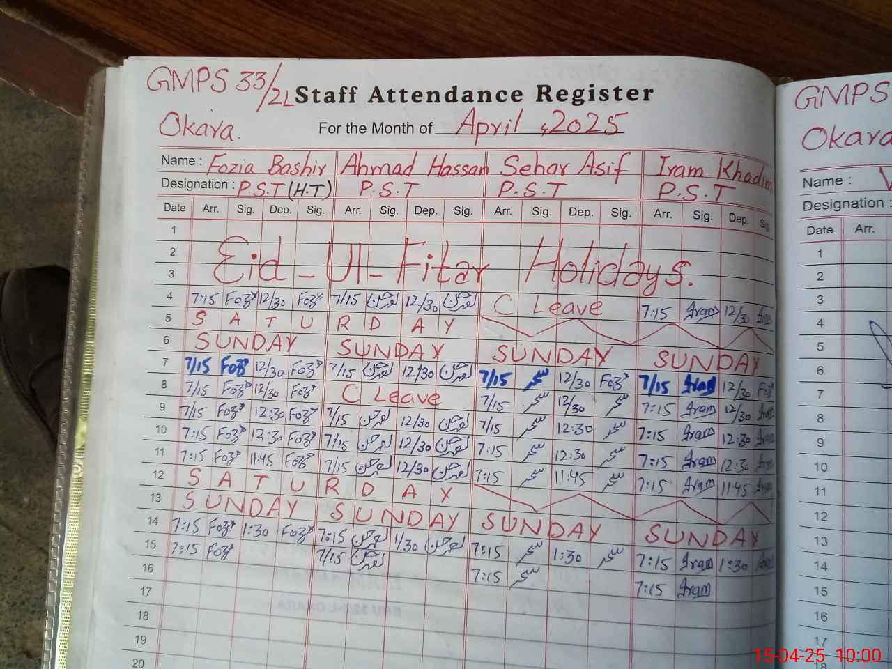 | Leave | Duty | Absent | Maternity | Medical | Ex- Pak |