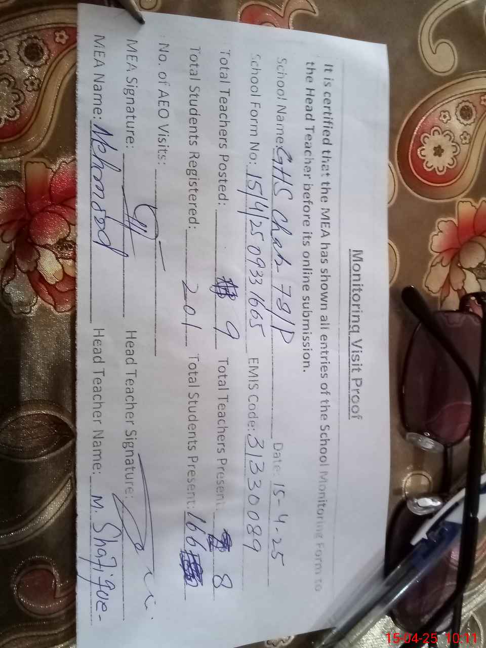 | EMIS Code: 31330089 | Name of School: GHS CHAK 78/P | |||