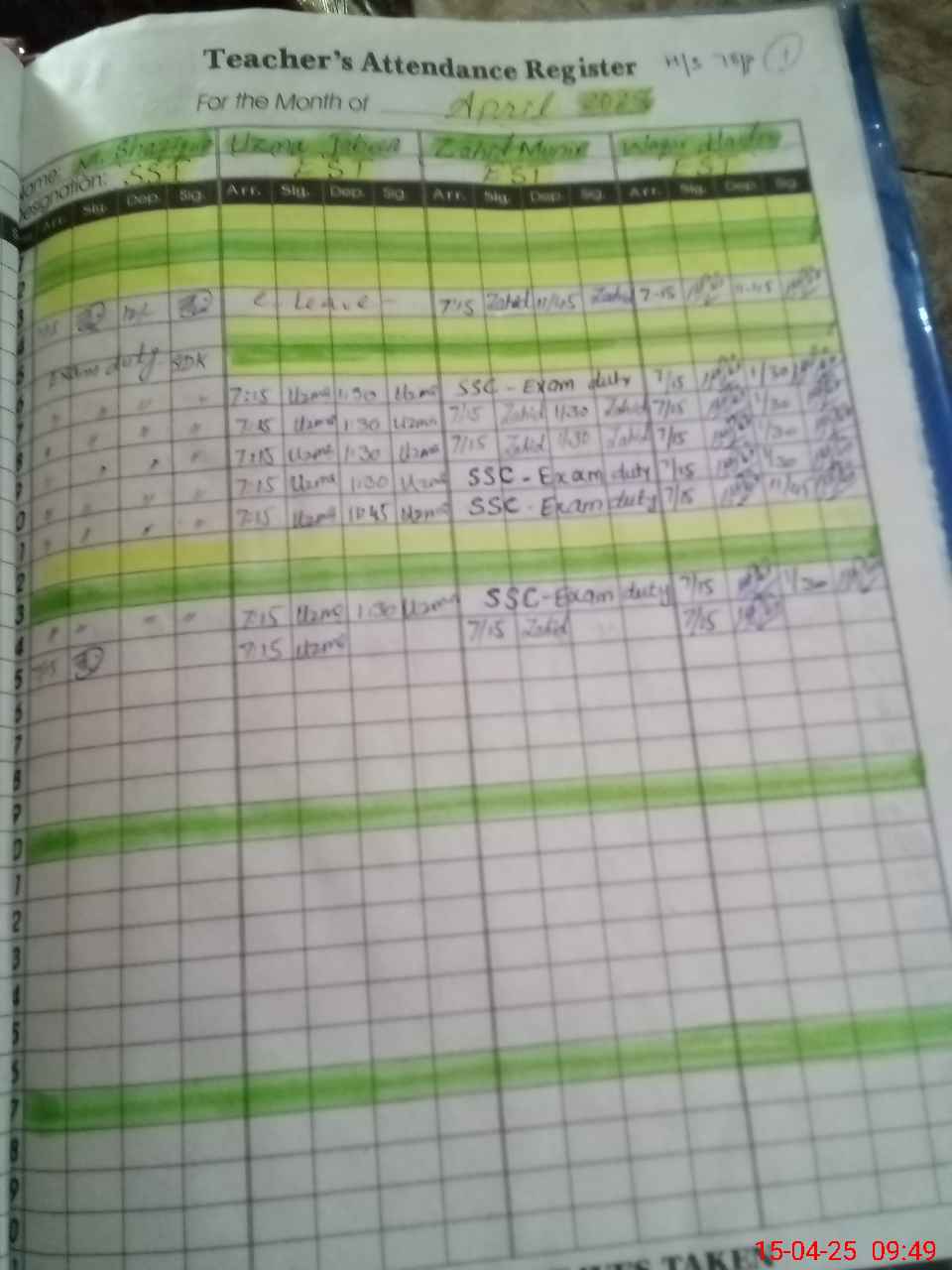 | Name: Mu**** Sh**** Designation: (School Headmaster's/Headmistress's) S.S.T.(General) Phone/Cell Number: 03**** |