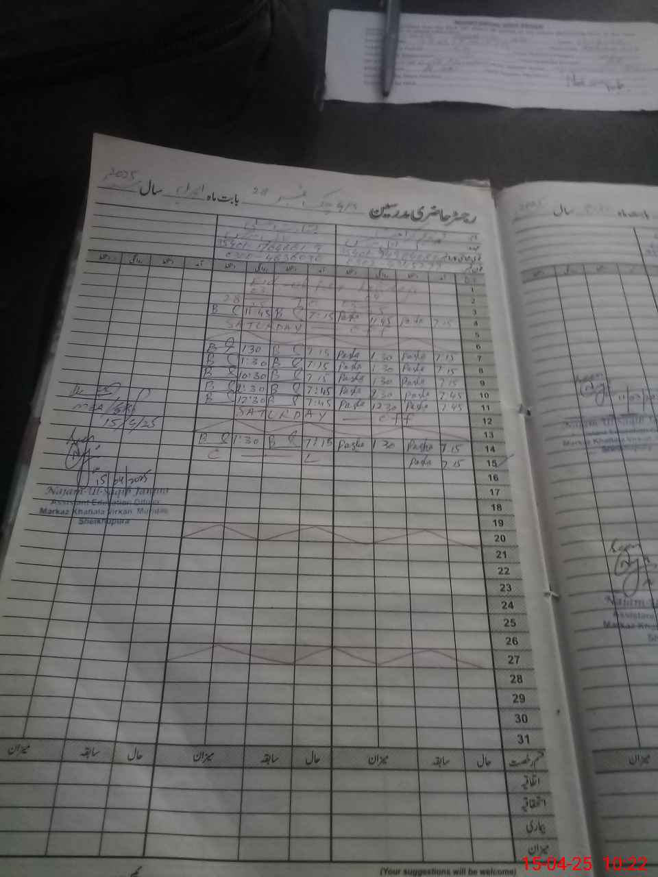| CNIC | Full Name | Designation | R/C | Absence During Last Calender Month |