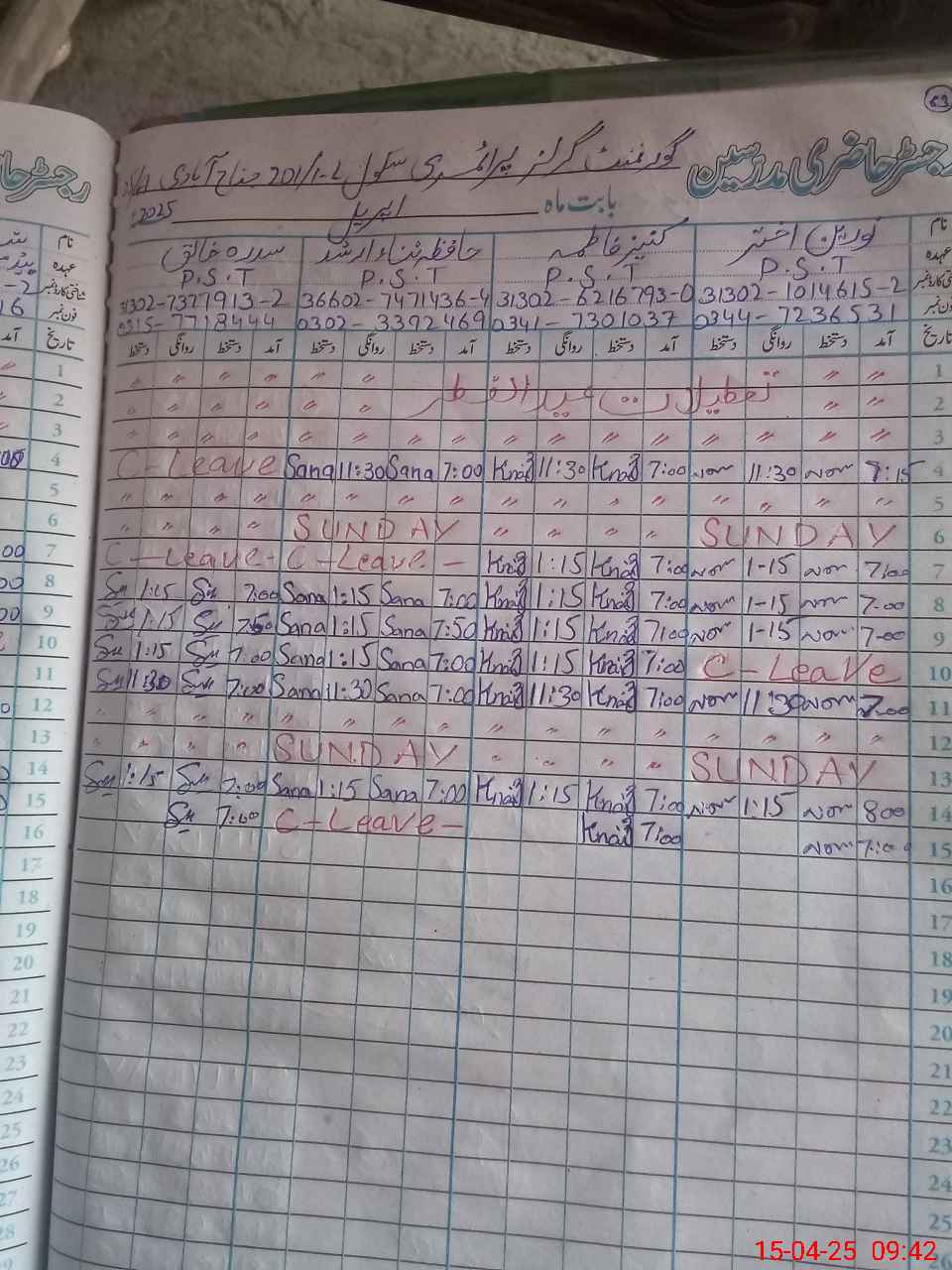 | 36**** | Ha**** Sa**** Ar**** | PST | Regular | 2 | 0 | 0 | 0 | 0 | 0 | 0 | 0 | 2 | Casual |