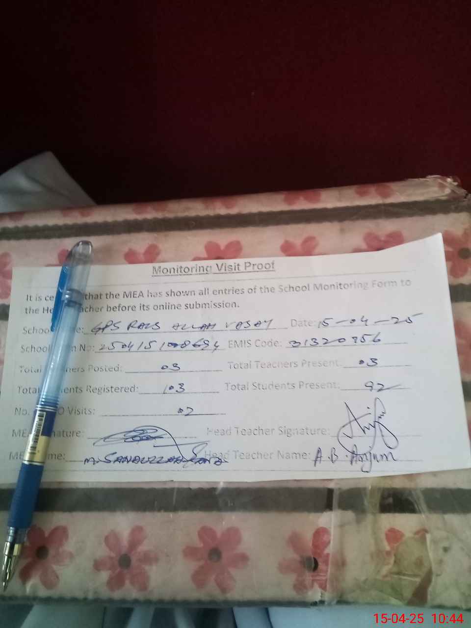 | EMIS Code: 31320756 | Name of School: GPS RAIS ALLAH VASAYA | |||