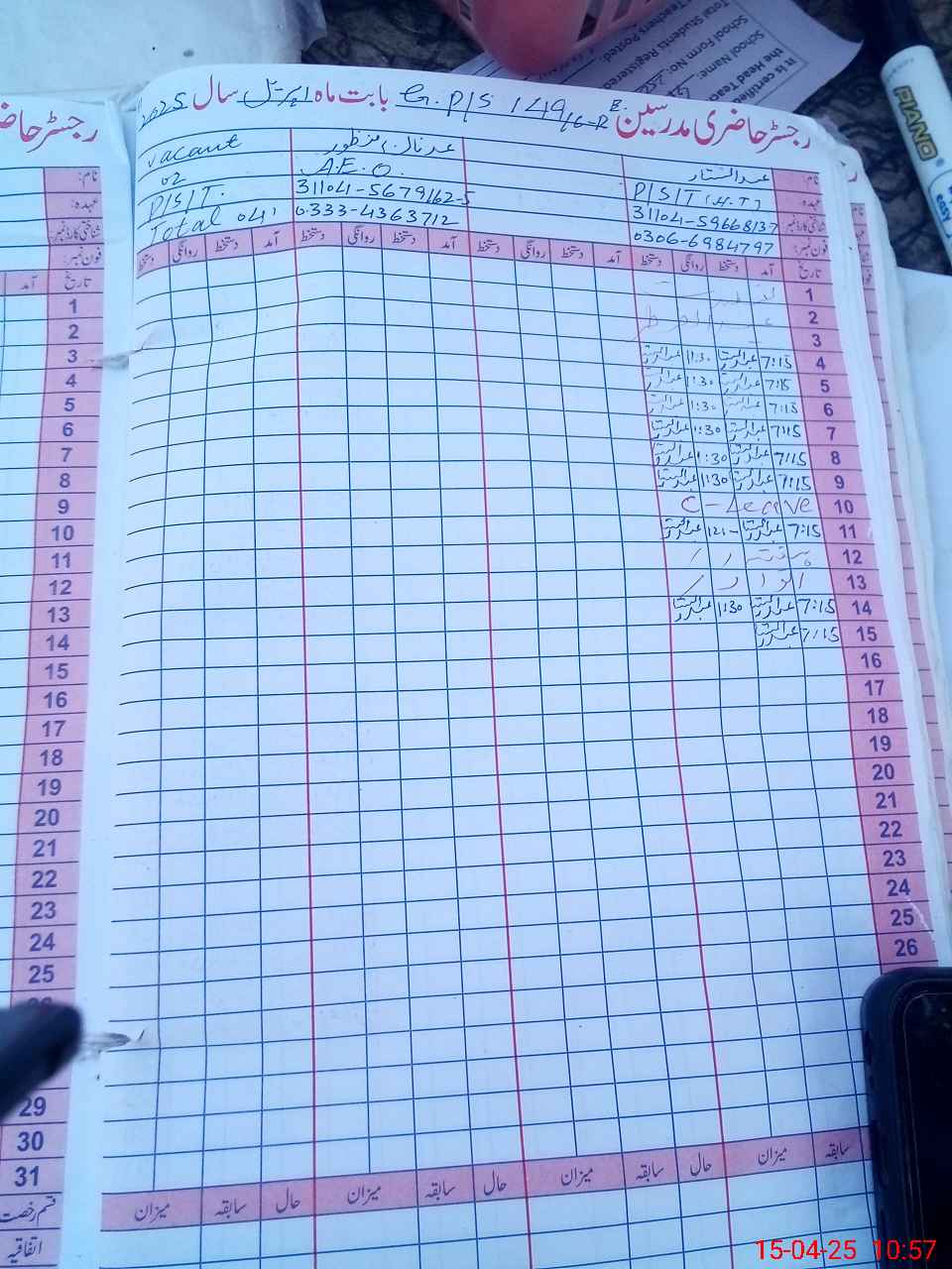 | Name: AB**** SA**** Designation: (School Headmaster's/Headmistress's) PTC Phone/Cell Number: 03**** |