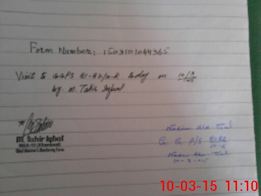 | Monitoring Date: 10-03-2015 | Start Time: 10-03-2015 10:44 AM | End Time: 10-03-2015 11:18 AM | Name of MEA: M.Ta**** Iq**** (S**** | |