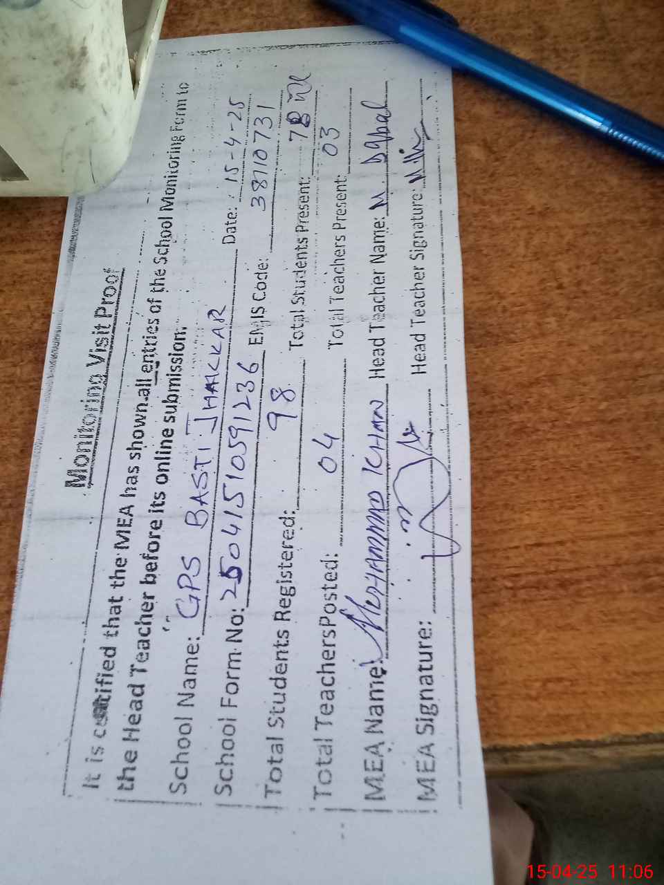 | EMIS Code: 38110731 | Name of School: GPS BASTI JAKHAR | |||