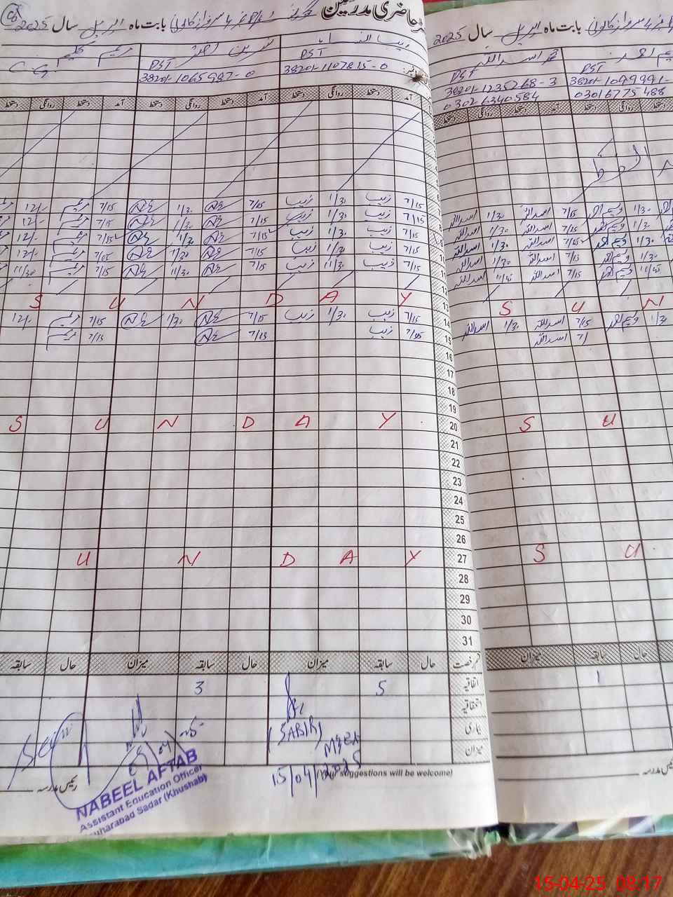 | Name: BA**** SA**** Designation: (School Headmaster's/Headmistress's) PST Phone/Cell Number: 03**** |
