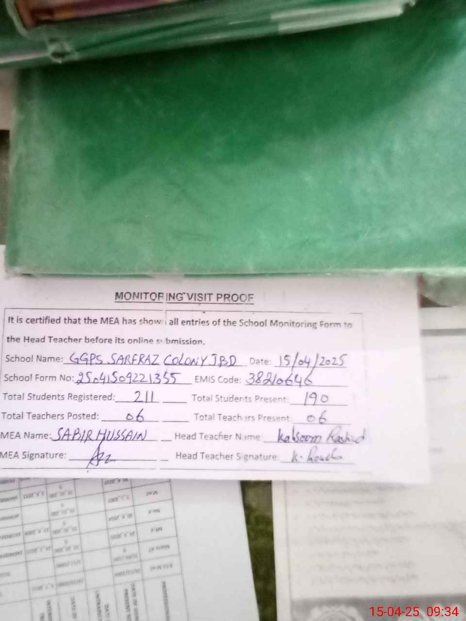 | EMIS Code: 38210646 | Name of School: GGPS SARFRAZ COLONY JAUHARABAD | |||