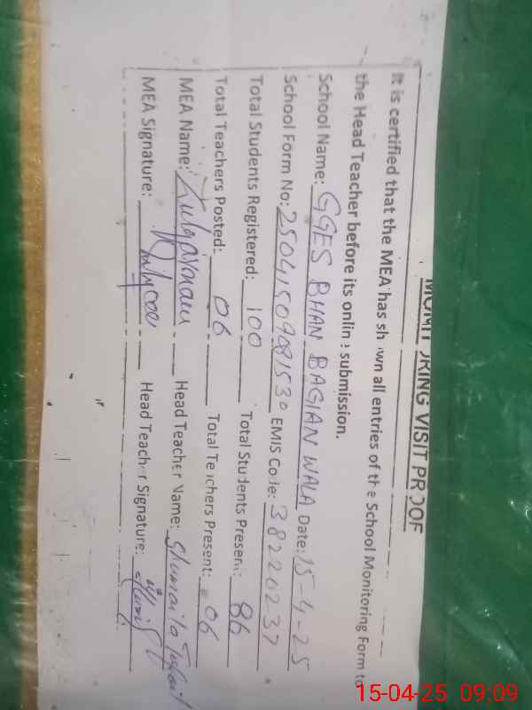 | EMIS Code: 38220237 | Name of School: GGES BHAN BAGIAN WALA | |||