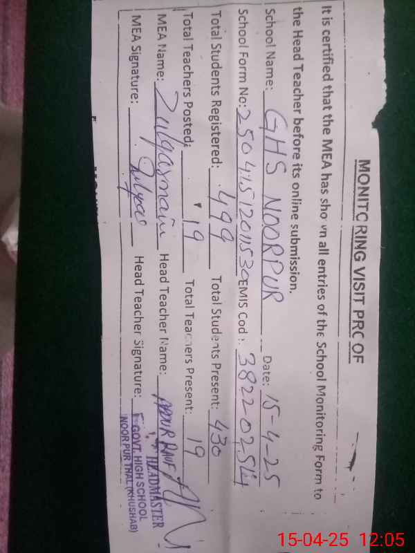 | EMIS Code: 38220254 | Name of School: GHS NOORPUR THAL | |||