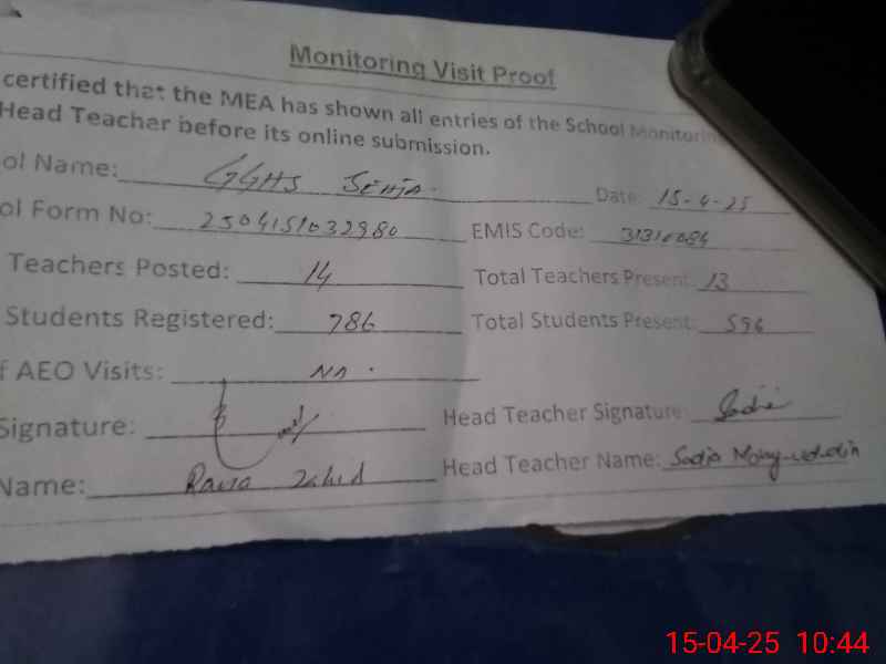 | EMIS Code: 31310084 | Name of School: GGHS SEHJA | |||
