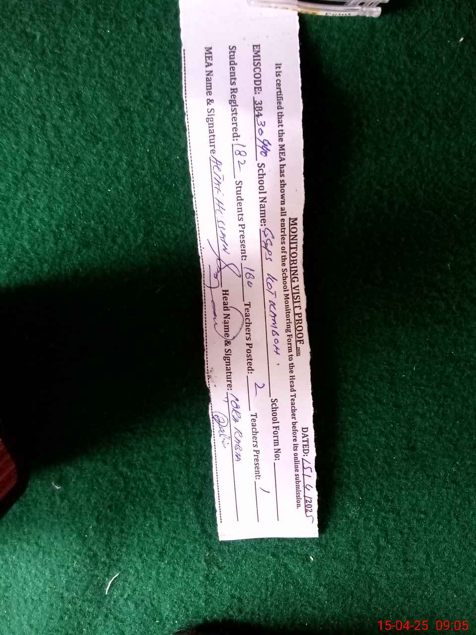 | EMIS Code: 38430440 | Name of School: GGPS NO.2 KOT KAMBOH | |||