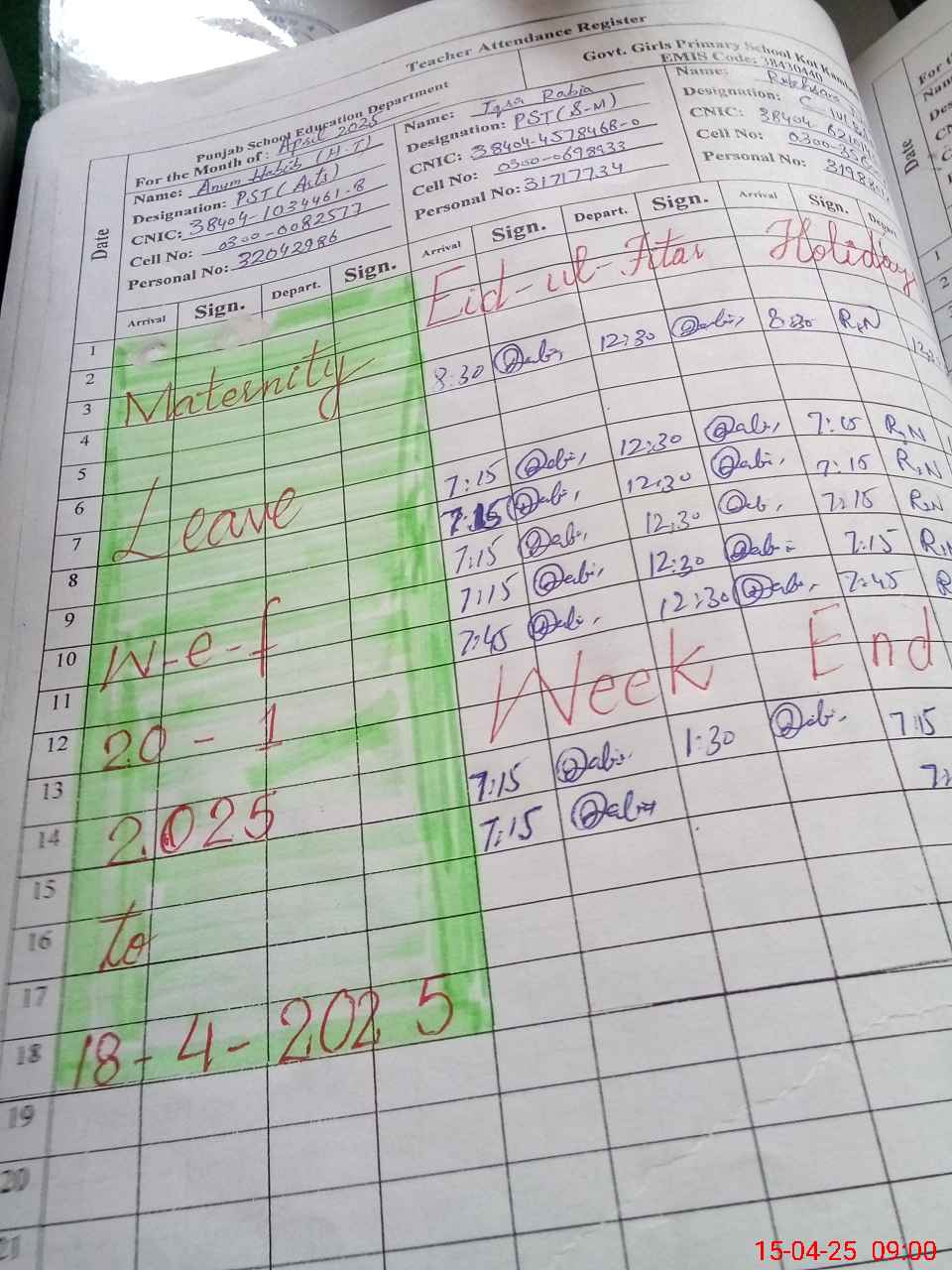 | 38**** | An**** Ha**** | PST | Regular | 31 | 0 | 0 | 31 | 0 | 0 | 0 | 0 | 0 | Maternity |