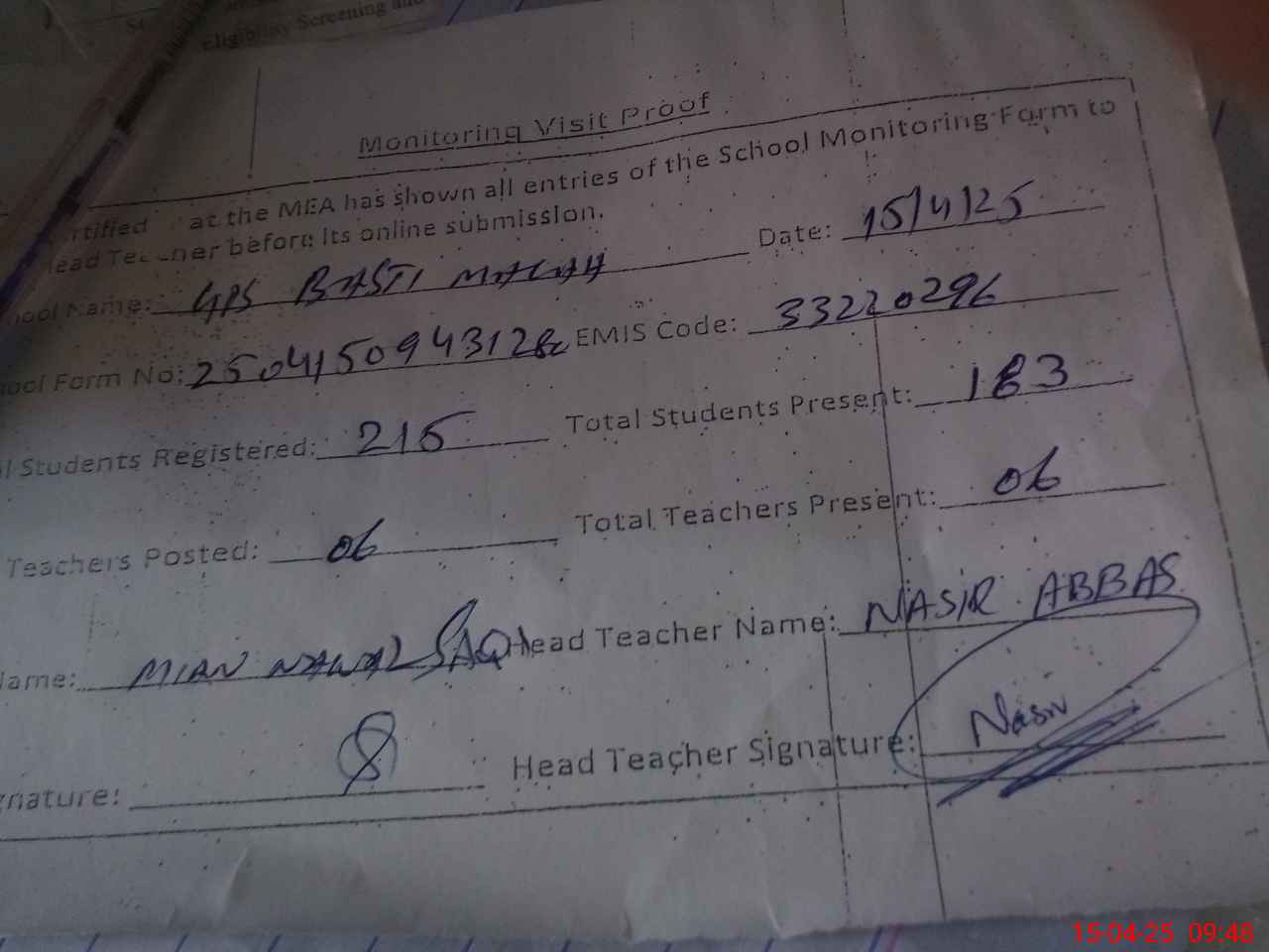 | EMIS Code: 33220296 | Name of School: GPS BASTI MALAH | |||