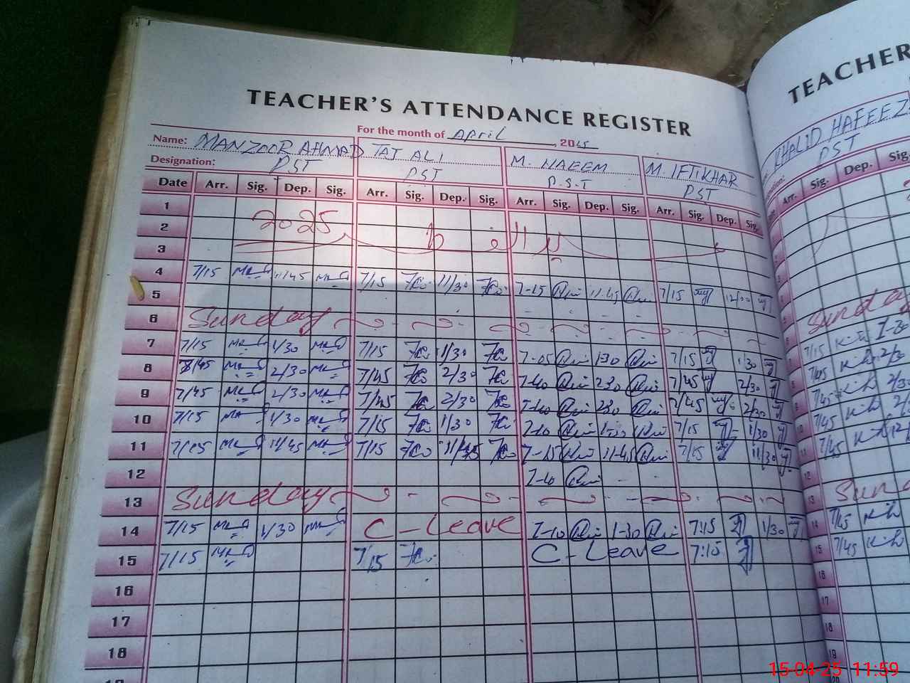 | CNIC | Full Name | Designation | R/C | Absence During Last Calender Month |