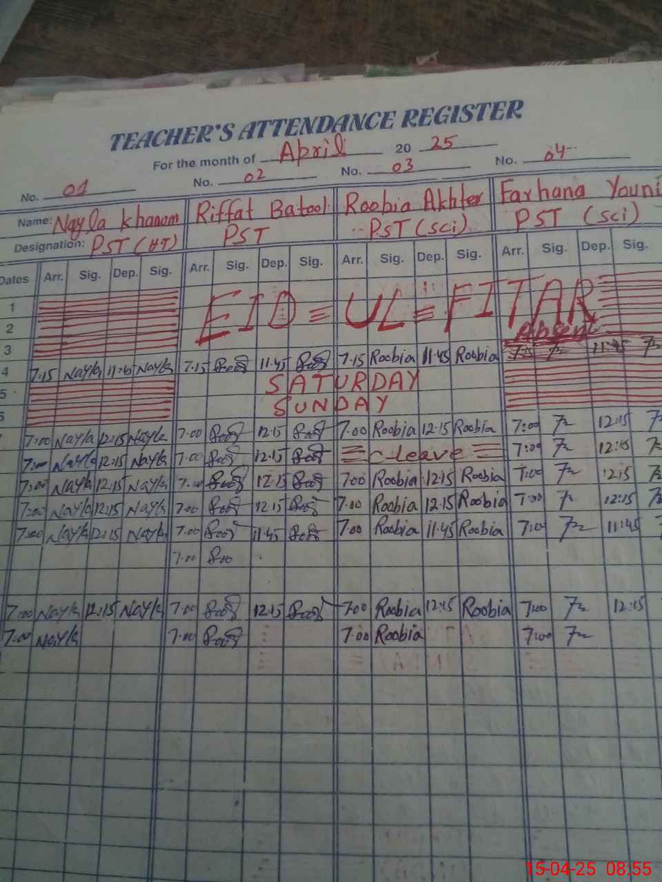 | Name: NA**** KH**** YA**** Designation: (School Headmaster's/Headmistress's) PST Phone/Cell Number: 03**** |