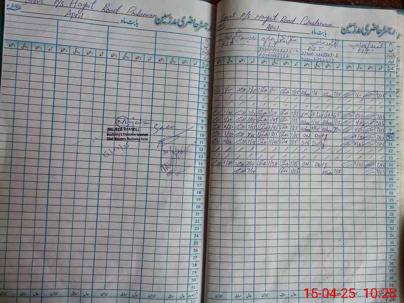 | CNIC | Full Name | Designation | R/C | Absence During Last Calender Month |