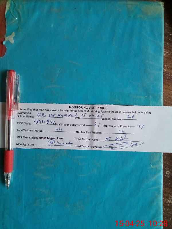 | EMIS Code: 38410843 | Name of School: GPS CHAK NO.1 NB HAYAT ROAD PHULARWAN | |||