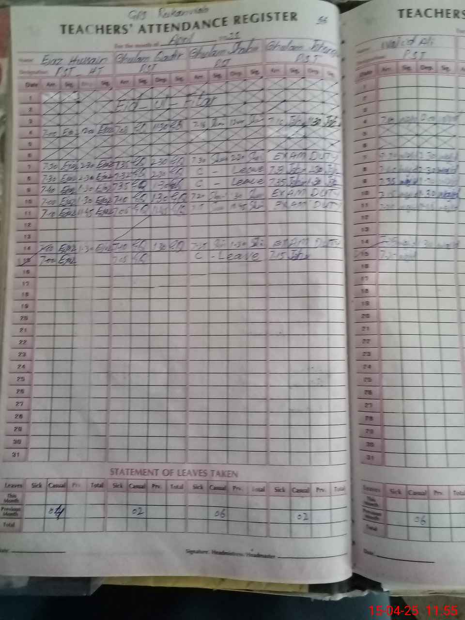 | Leave | Duty | Absent | Maternity | Medical | Ex- Pak |