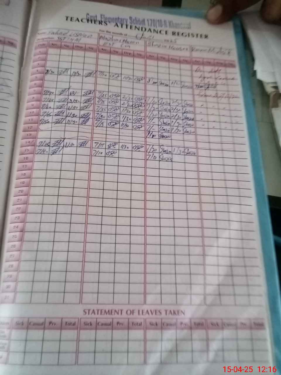 | 36**** | Mu**** Sa**** | C4 | 0 | 0 | 31 | 0 | 0 | 0 | 0 | 0 | 0 | Absent (Un-Authorized) | |