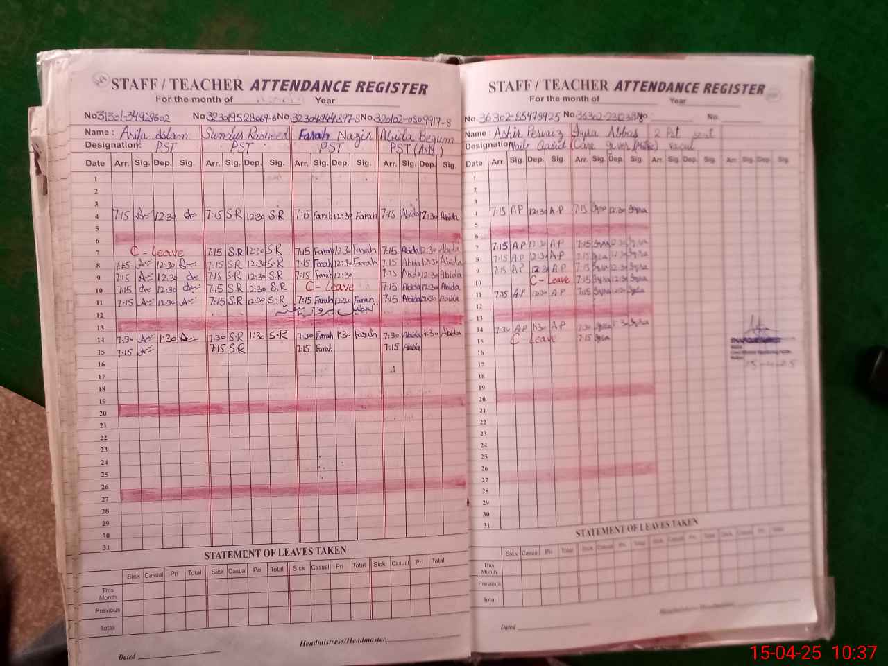 | 36**** | As**** Pe**** | NAIB QASID | Regular | 0 | 0 | 0 | 0 | 0 | 0 | 0 | 0 | 0 | Casual |