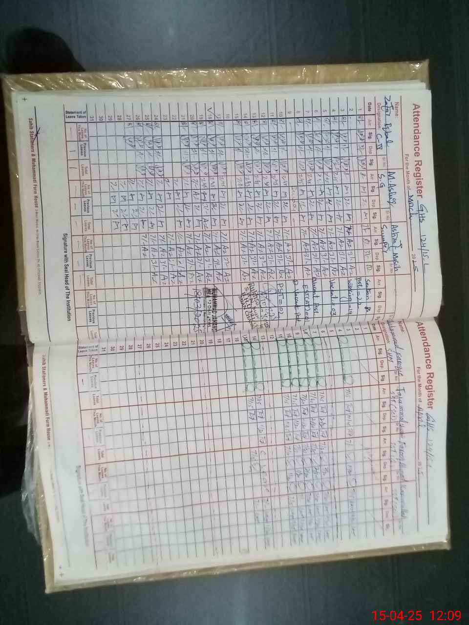 | CNIC | Full Name | Designation | R/C | Absence During Last Calender Month |