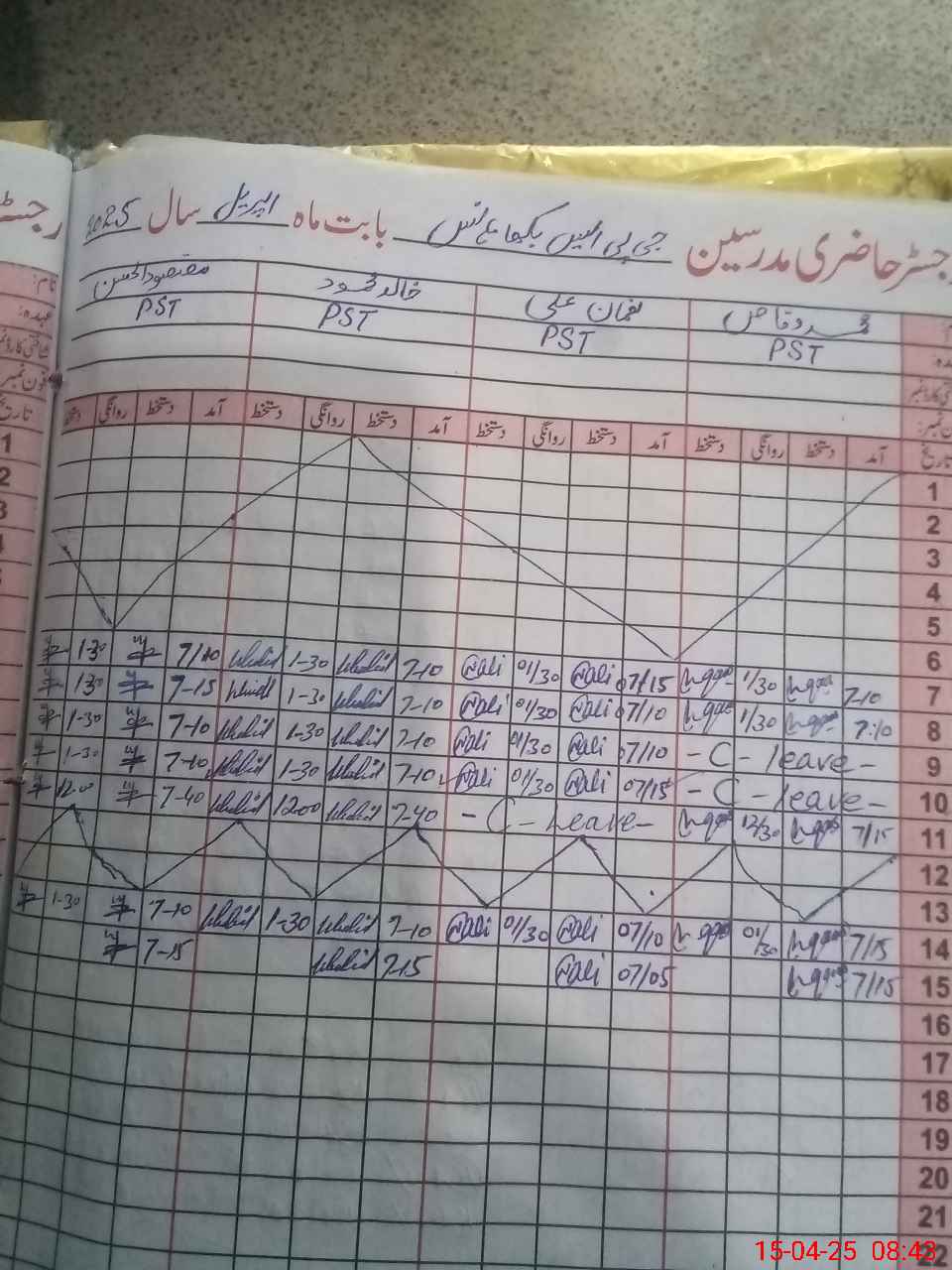 | CNIC | Full Name | Designation | R/C | Absence During Last Calender Month |