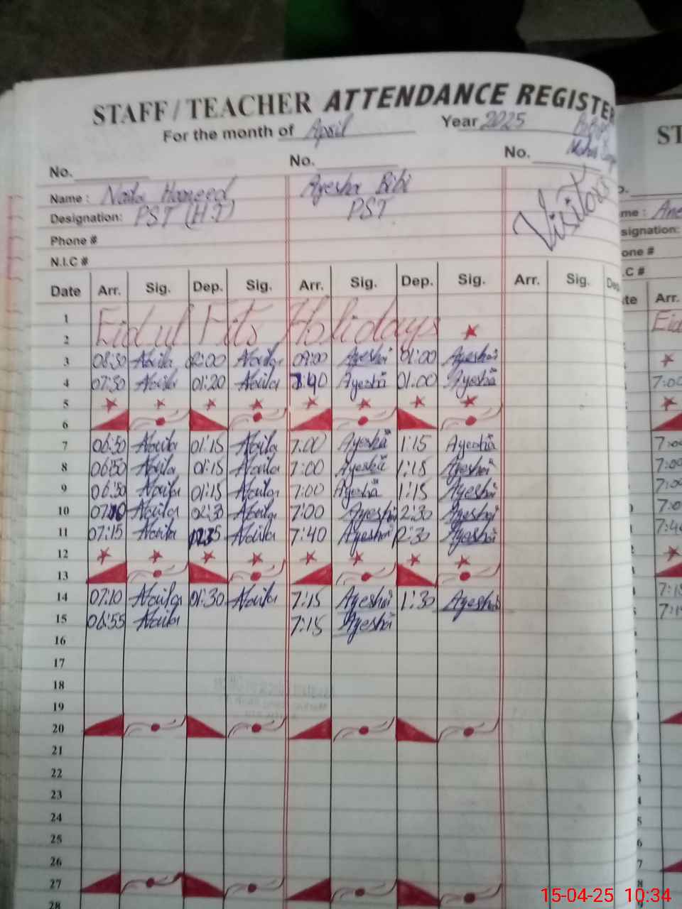 | Name: NA**** HA**** Designation: (School Headmaster's/Headmistress's) PST Phone/Cell Number: 03**** |