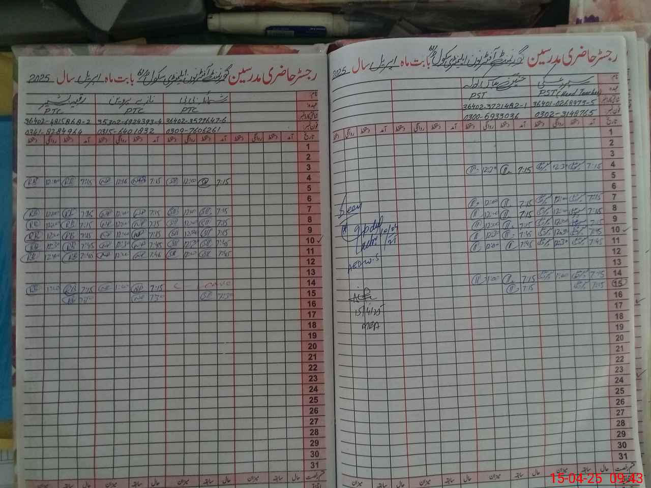 | Name: Sp**** Al**** Designation: (School Headmaster's/Headmistress's) PST Phone/Cell Number: 03**** |