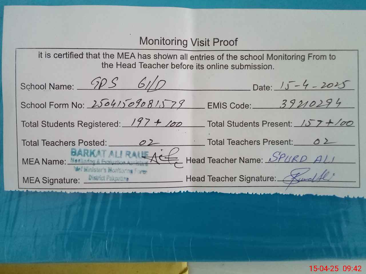 | EMIS Code: 39210294 | Name of School: GPS 61/D | |||