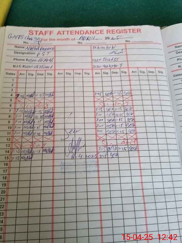 | Name: Nu**** Pe**** Designation: (School Headmaster's/Headmistress's) PST Phone/Cell Number: 03**** |