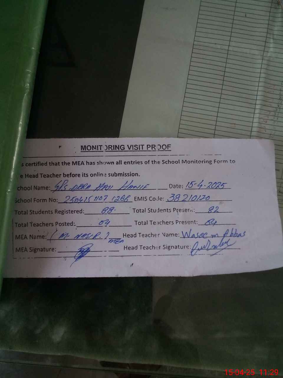 | EMIS Code: 38210170 | Name of School: GPS DERA HAJI HANIF | |||