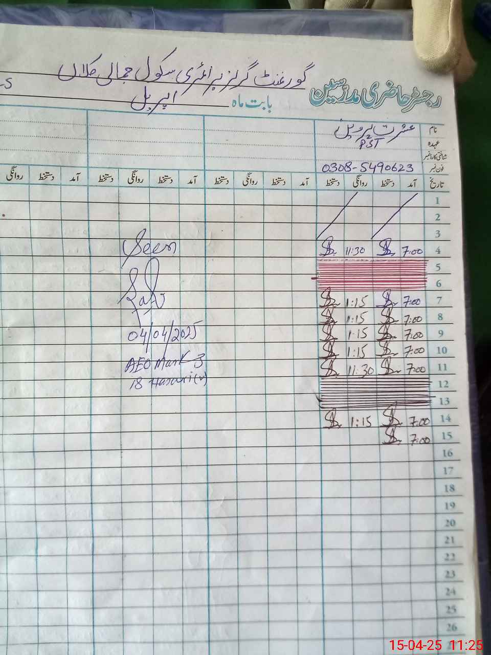 | Name: Su**** Af**** Designation: (School Headmaster's/Headmistress's) PST Phone/Cell Number: 03**** |