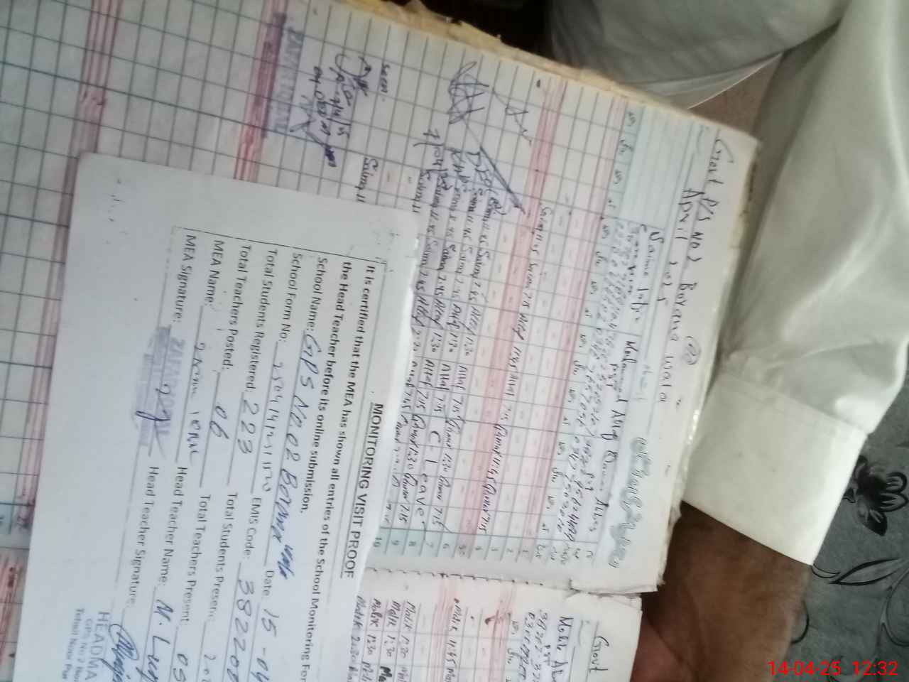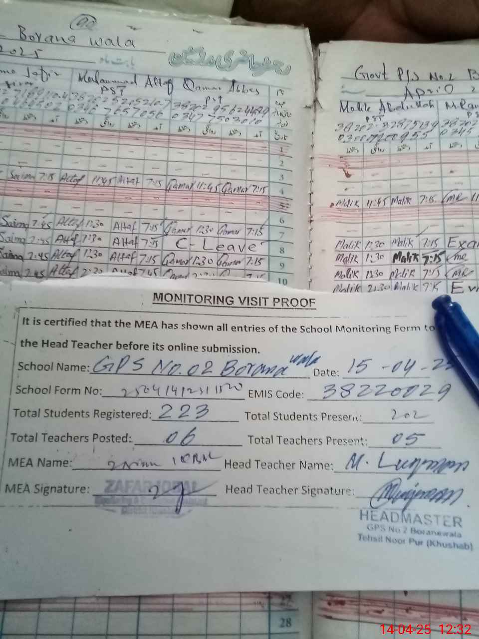 | Attendance Register | Head Teacher | MEA with School | Visit Proof |