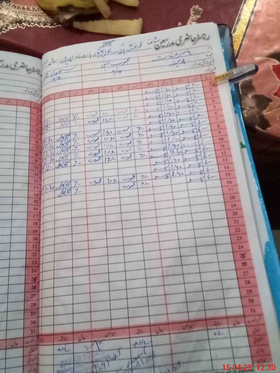 | CNIC | Full Name | Designation | R/C | Absence During Last Calender Month |