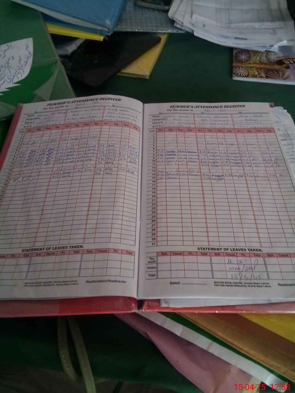 | CNIC | Full Name | Designation | R/C | Absence During Last Calender Month |