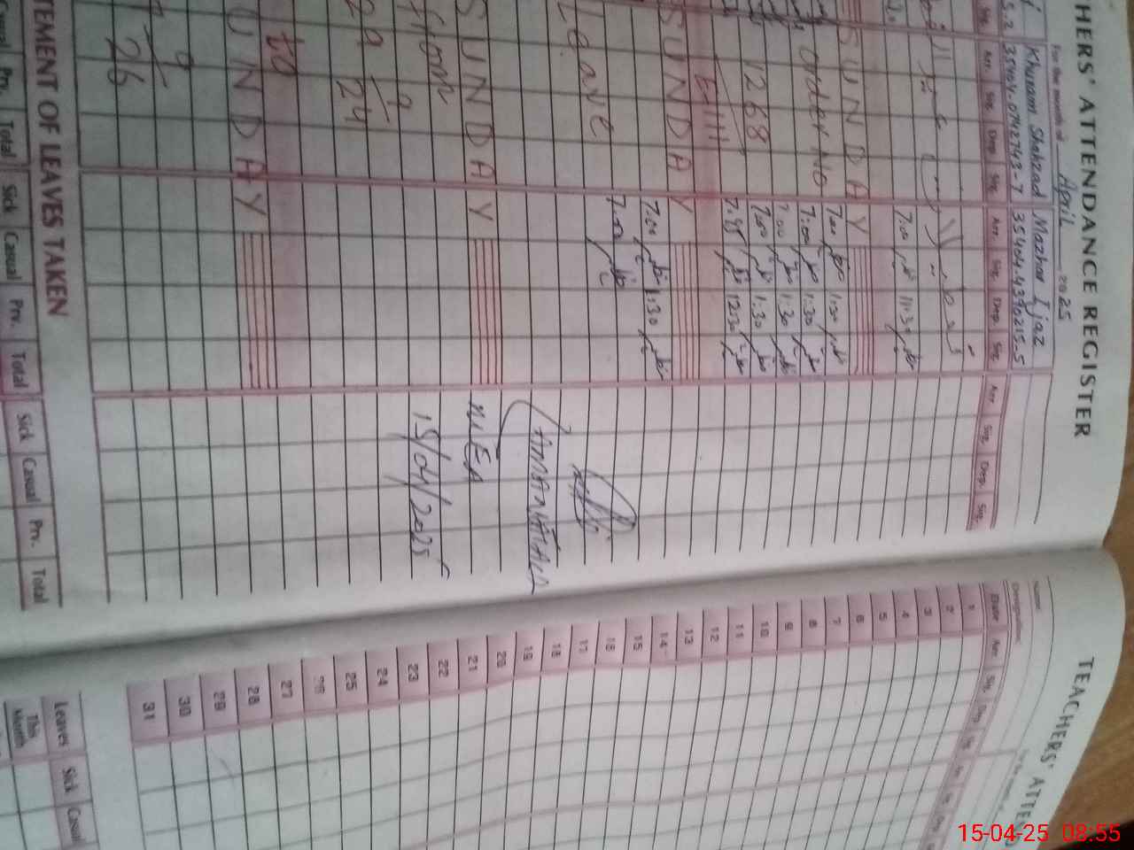 | 35**** | Kh**** Sh**** | NIBE QASID | Regular | 0 | 0 | 30 | 0 | 0 | 0 | 0 | 0 | 0 | Absent (Un-Authorized) |