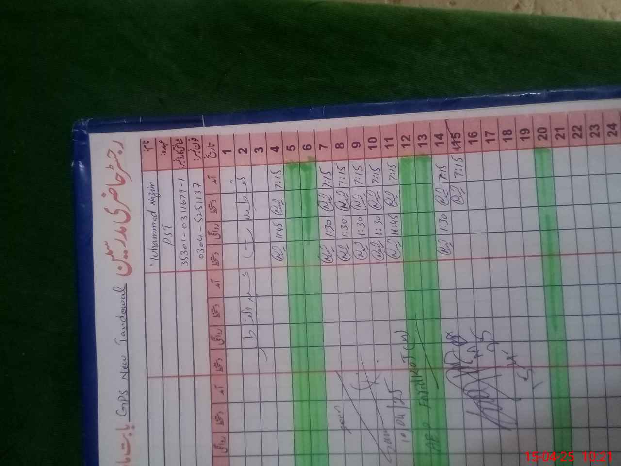 | Name: Mu**** Na**** Designation: (School Headmaster's/Headmistress's) PST Phone/Cell Number: 03**** |