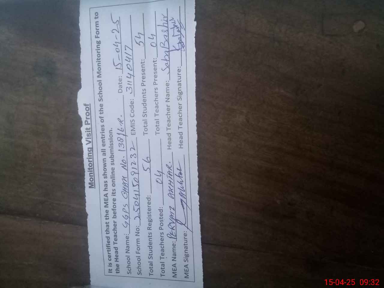 | EMIS Code: 31140417 | Name of School: GGPS CHAK NO 138/6-R | |||