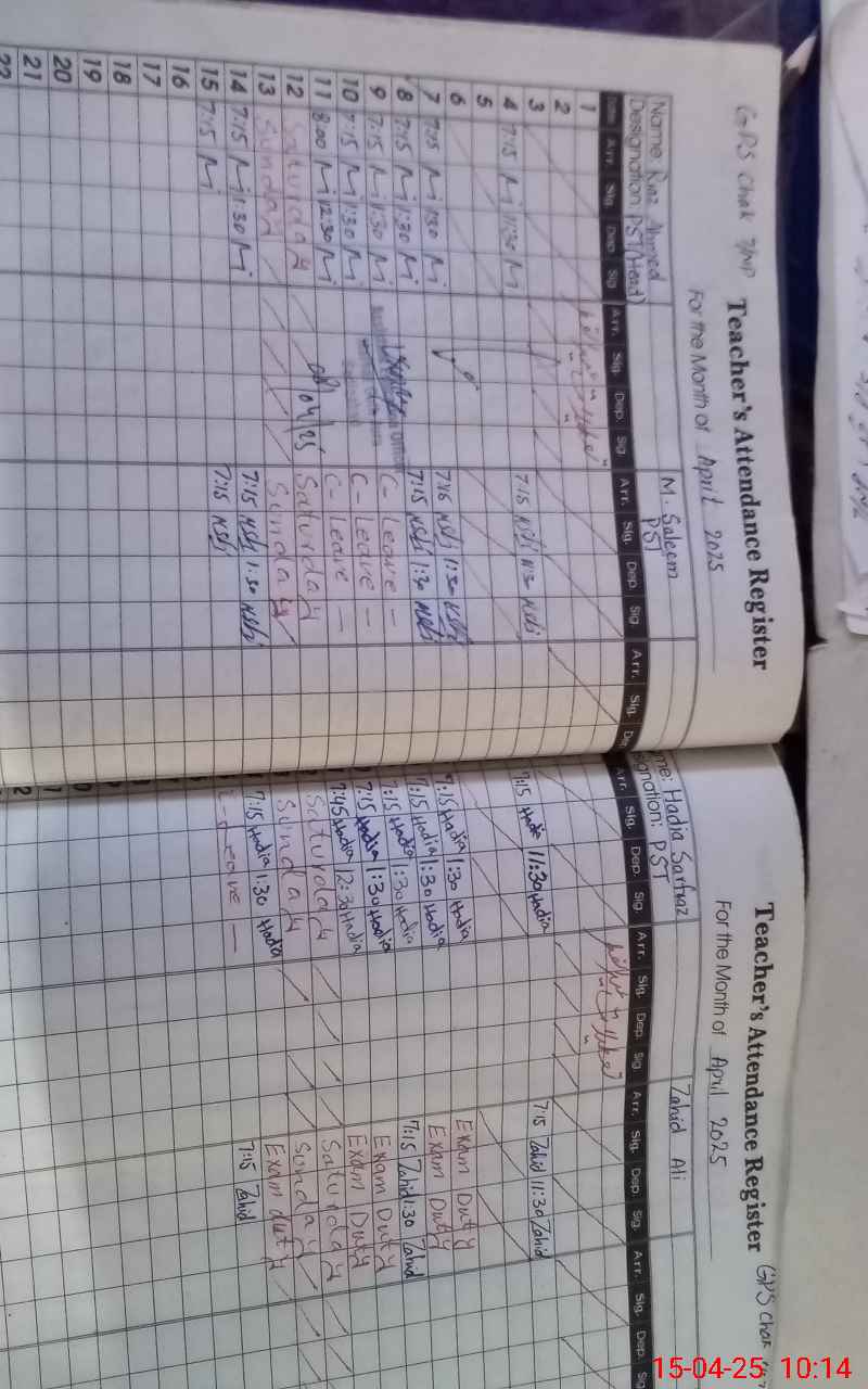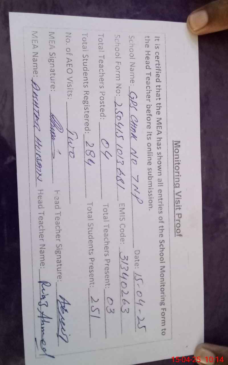 | EMIS Code: 31340263 | Name of School: GPS CHAK NO 7/NP | |||