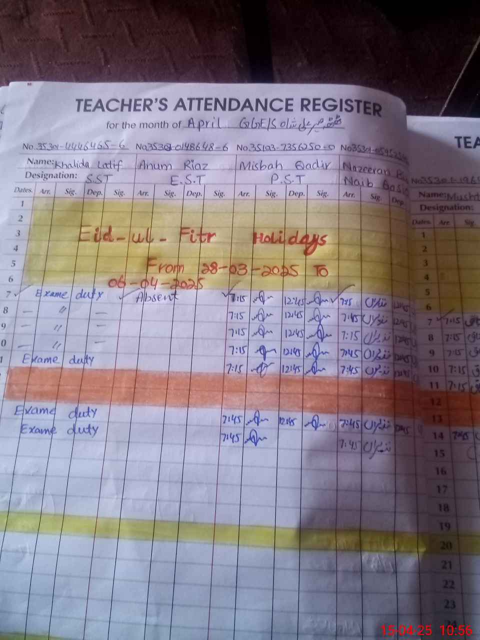 | 35**** | Kh**** La**** | SST | Regular | 0 | 0 | 0 | 0 | 0 | 0 | 0 | 0 | 0 | Exam Duty |
