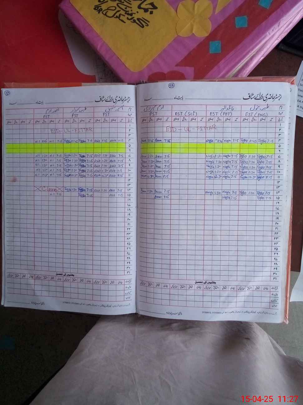 | CNIC | Full Name | Designation | R/C | Absence During Last Calender Month |