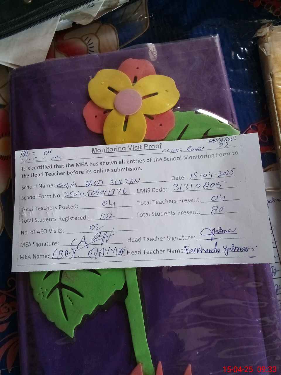| EMIS Code: 31310805 | Name of School: GGPS BASTI SULTAN | |||