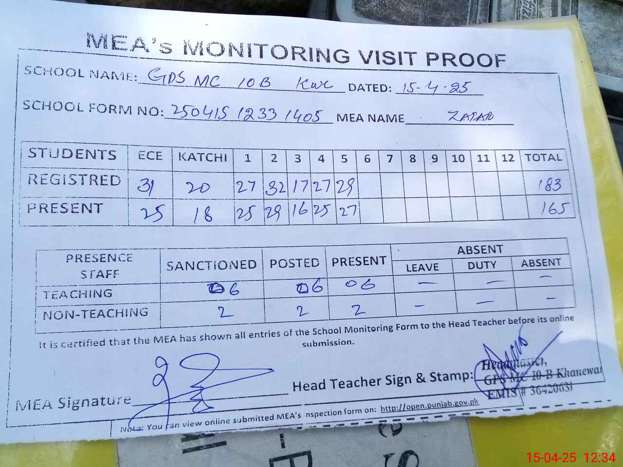 | EMIS Code: 36420631 | Name of School: GPS MC 10-B KOT BERBAL KHANEWAL | |||