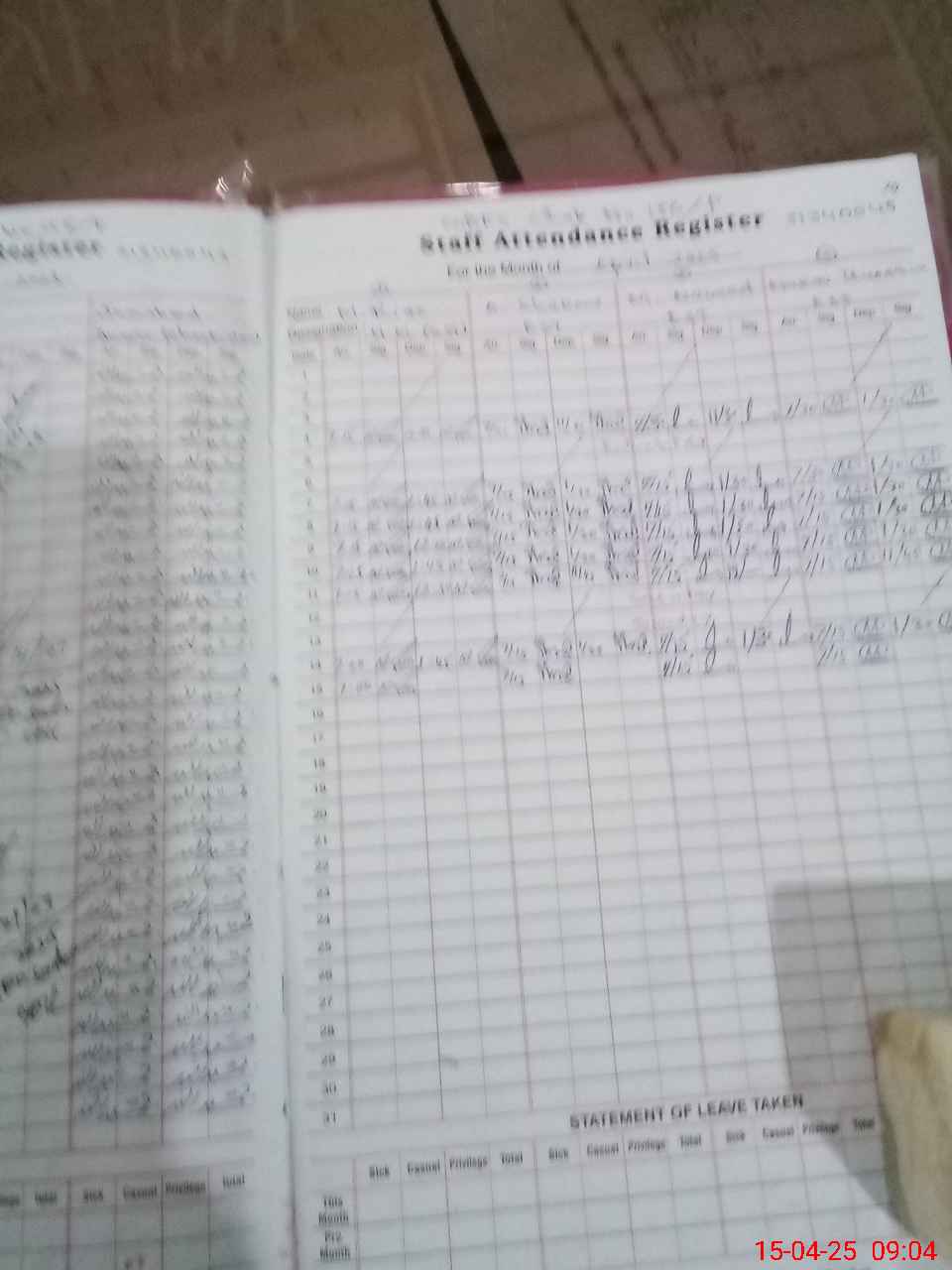 | Leave | Duty | Absent | Maternity | Medical | Ex- Pak |