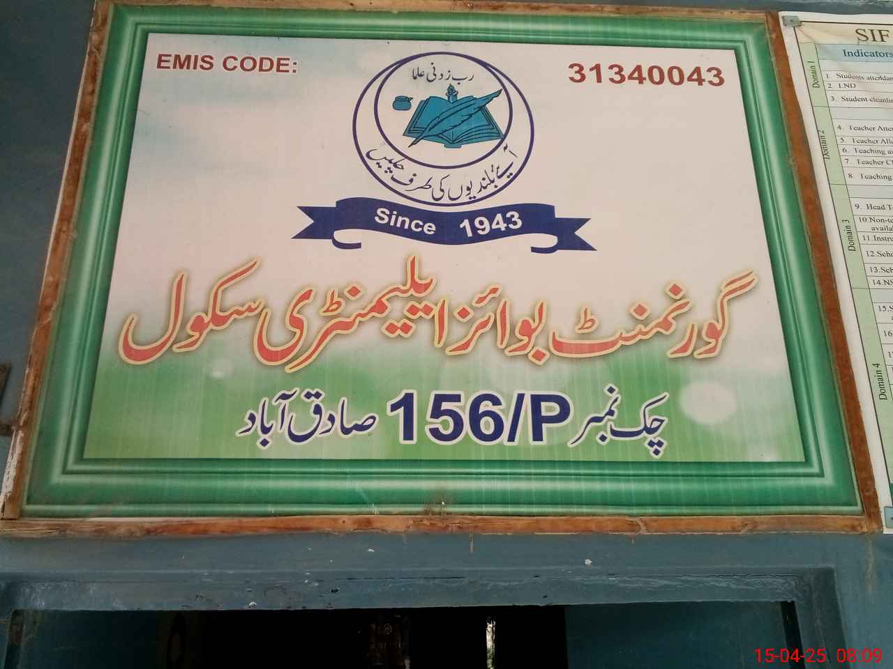 | EMIS Code: 31340043 | Name of School: GES CHAK NO 156/P SADIQABAD | |||