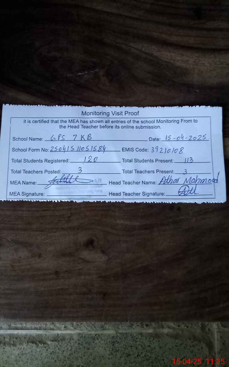 | EMIS Code: 39210108 | Name of School: GPS 7 KB | |||