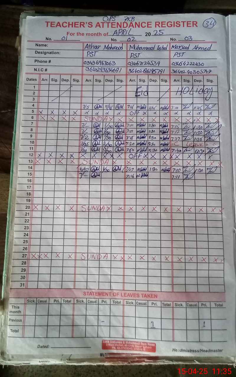 | Name: AT**** MA**** Designation: (School Headmaster's/Headmistress's) PST Phone/Cell Number: 03**** |